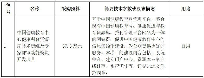 中国健康教育中心就“中国健康教育中心健康科普资源库技术运维及专家评审功能模块开发项目”进行比选采购,现邀请合格供应商参加比选响应。