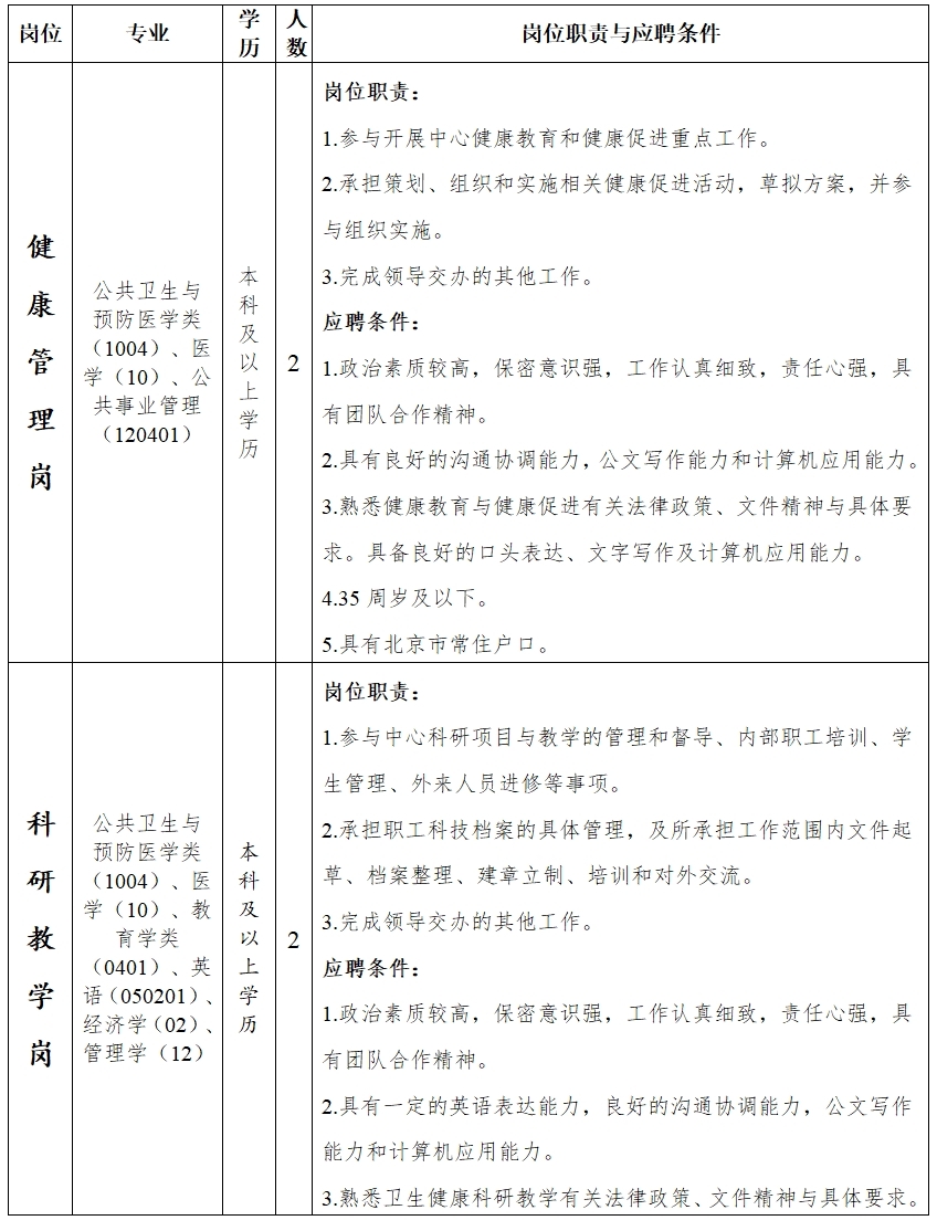 中国健康教育中心关于公开招聘