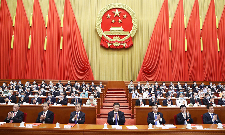 习近平、李克强、汪洋、王沪宁、赵乐际、韩正、王岐山和大会主席团成员在主席台就座。