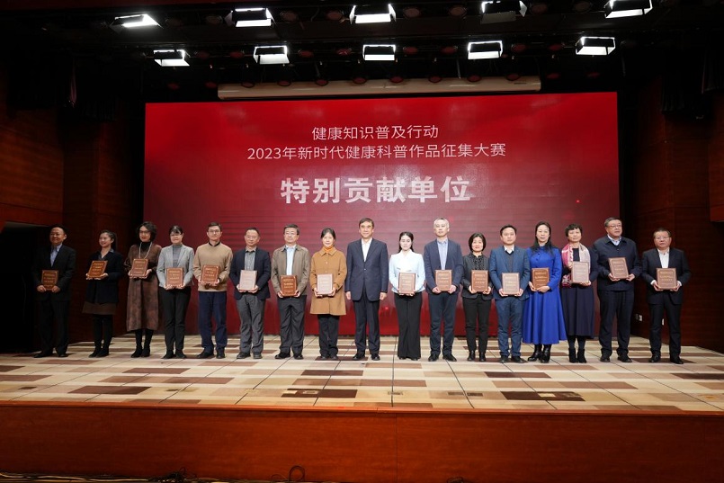 会上,颁发了2023年新时代健康科普作品征集大赛相关奖项。中心获评大赛特别贡献单位。中心开发的《科学爱耳护耳》《口腔健康 全身健康》《认识节气巧养生》视频获评视频类优秀作品,《抑郁症的七七八八》《讲卫生 更健康》音频获评音频类优秀作品,《“减盐”三字经》音频获评音频类入围作品,《学生健康教育丛书》获评图书类优秀作品,《“健康生活,从此刻开始”——健康生活方式系列公益海报(5 张)》《“文明健康绿色环保”系列公益海报(5 张)》获评海报类优秀作品,《“宜居靓家园 健康新生活”系列海报(4 张)》《2023 年世界无偿献血者日主题海报》获评海报类入围作品,《“五一”假期健康提示长图》获评一图读懂类优秀作品。