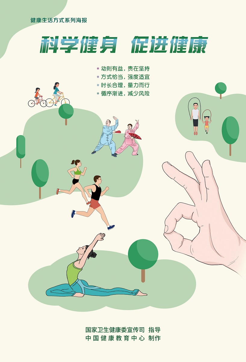 2022年9月1日是第16个“全民健康生活方式行动日”,每年的9月也是健康生活方式月。在国家卫生健康委宣传司指导下,中国健康教育中心设计开发了健康生活方式主题系列海报,一套五张,内容涵盖“做自己健康第一责任人”,以及健康四大基石——合理膳食、适量运动、戒烟限酒、心理平衡。为了自己和家人的健康幸福,让我们选择健康生活方式,行动起来!