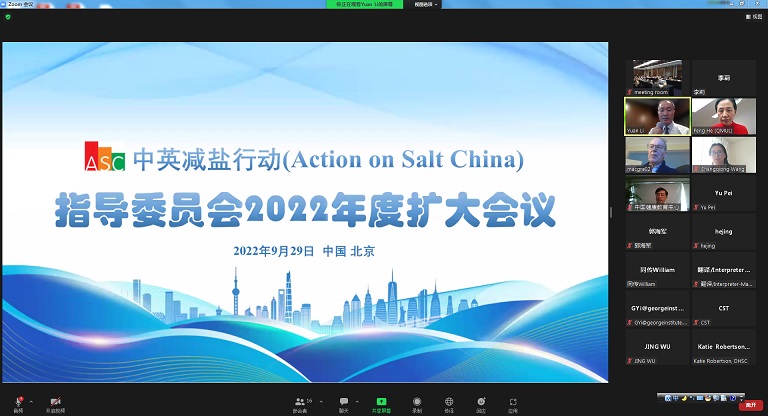 2022年9月29日,“中英减盐行动”指导委员会2022年度扩大会议在北京顺利召开。本次会议既是项目总结会,也是一次高层研讨会。国家卫生健康委规划司司长毛群安,中国健康教育中心党委书记、主任李长宁以及有关专家出席会议。来自中国疾控中心、中国健康教育中心、国家食品安全风险评估中心、部分医院以及英国伦敦玛丽女王大学、乔治全球健康研究院、英国国家健康研究所(NIHR)的专家和领导以线上和线下相结合的方式参加了会议。