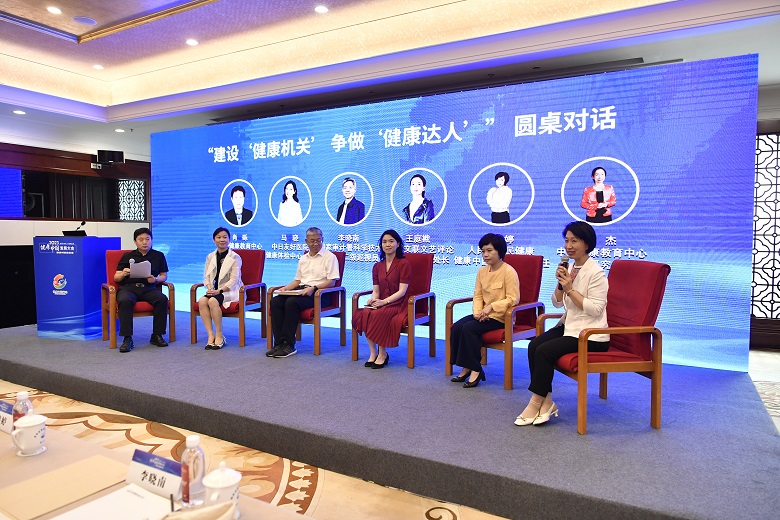 主题会上,全国机关事务管理研究会秘书长徐进,人民网战略委员会委员、人民健康董事长万世成,中心新闻处处长解瑞谦,浙江省卫生健康委健康促进与评价处处长张新卫和江西省爱国卫生与健康宣传促进中心健康传播科副科长熊丽分别介绍“健康机关”建设和“健康达人”选聘工作经验。