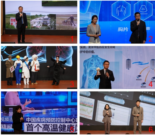 活动上,疾控中心寄生虫病所所长李石柱(图1),阜外医院信息中心主任袁靖、健康报社首席编辑夏海波(图2),广安门医院心血管科主任张振鹏(图4),疾控中心环境卫生学首席专家徐东群(图5),医科院北京协和医学院护理学院副教授张欢、北京协和医院护士薛家俊(图6)分别讲述了科技赋能传染病防控、心脏疾病早筛早治、中医诊疗、环境卫生、失智老年人康复等领域故事。医科院肿瘤医院医护人员表演科普剧(图3),介绍肺癌预防相关知识。