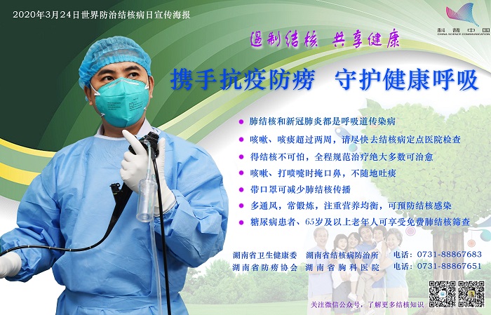 海报:携手抗疫防痨,守护健康呼吸(医生背景)