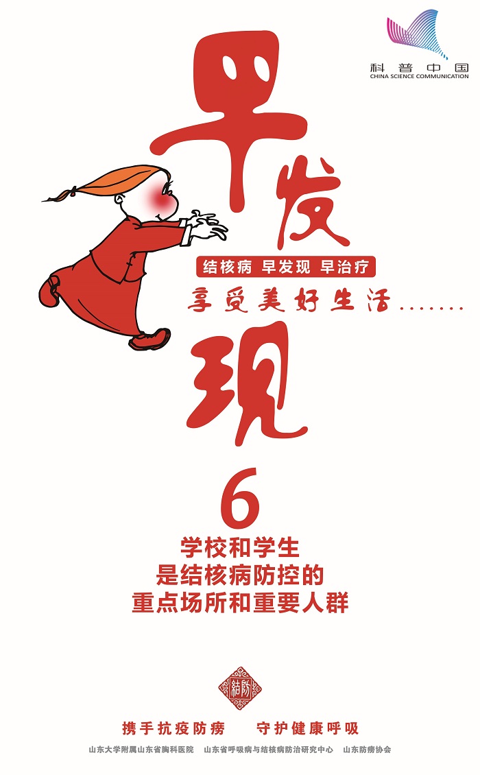 早发现宣传画-学校是结核病防控的重点场所和重点人群