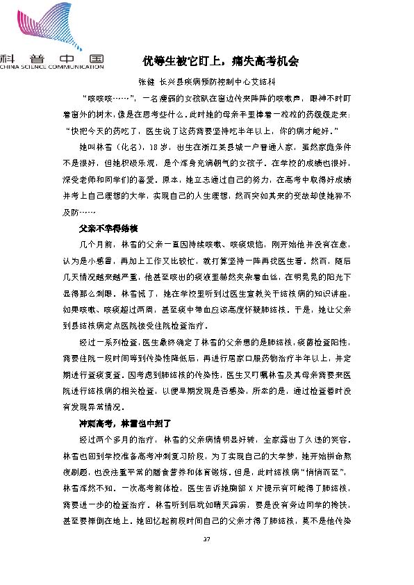 身边的结核病故事——优等生被它盯上,痛失高考机会