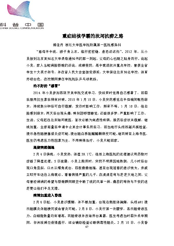 身边的结核病故事——重症结核学霸的坎坷抗痨之路