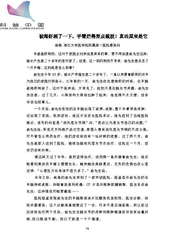 身边的结核病故事——被海虾刺了一下,手臂烂得差点截肢