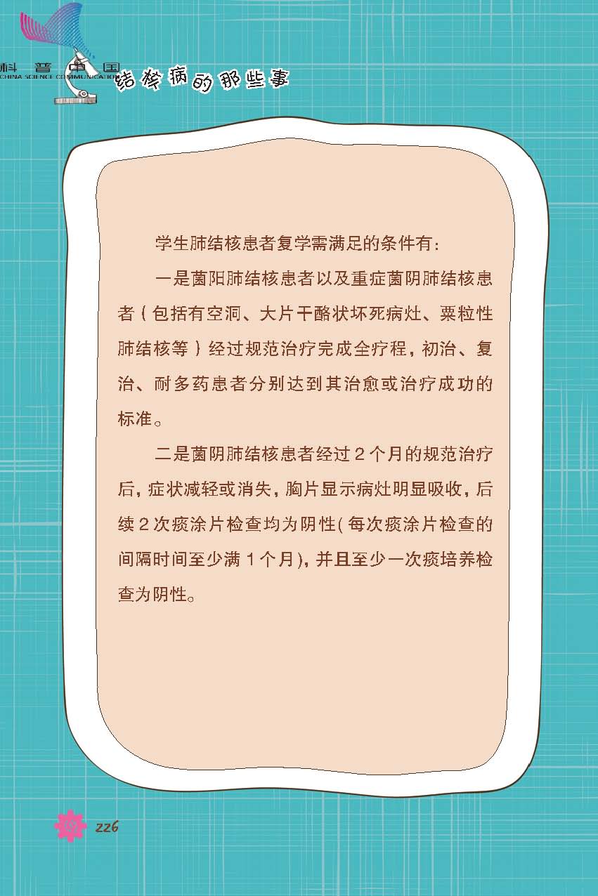 学生肺结核患者哪些情况可以复学